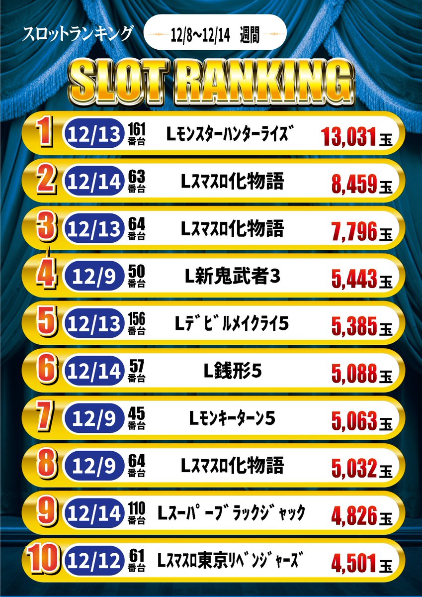 投稿本文: こんばんは!キコーナ八柱店です!! 🔥12/8~の週間ランキングが完成🔥前回に続いてパチンコ台1位は同じ台!?次の台選びの参考に! #つぶやキコーナ #八柱 #ランキング さらに表示