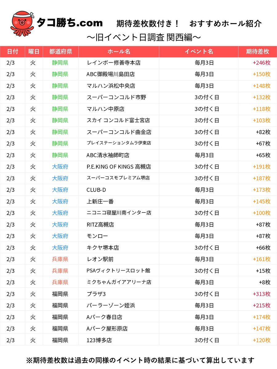 投稿本文: 🏆2/3 出てたお店ランキング(九州-平均差枚順)