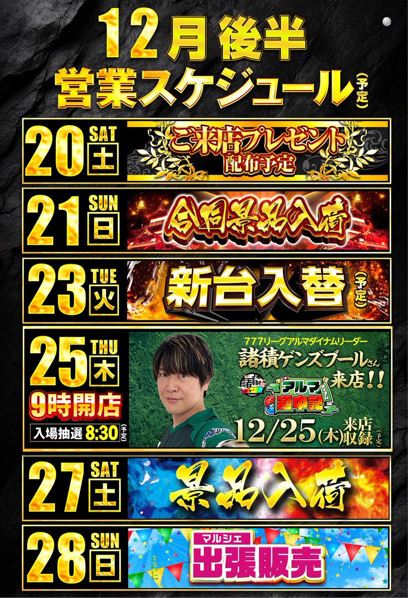 投稿本文: ダイナム福山店です😄12月後半スケジュールのお知らせです📅12月25日(木)我らが #アルマダイナム リーダー #諸積ゲンズブール(@genki0329)さん来店予定🎉今年の最後までお楽しみ頂けるように営業してまいります😉皆様のご来店お待ちいたしております‼️#アルマ道中記 #ダイナム さらに表示