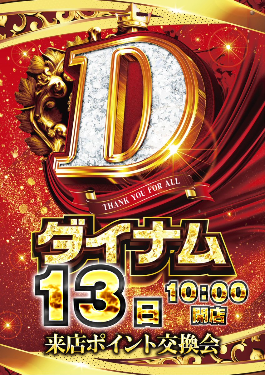 投稿本文: ダイナム大津店 です🫡 ✨12月13日(土)は #来店ポイント交換会 (予定)✨ 【入場抽選のご案内】 集合場所:エントランス 抽選時間:9時45分~ 再整列 :9時55分~ 入場開始:10時~ 早朝よりご来店お待ちしております‼️ #ダイナム さらに表示