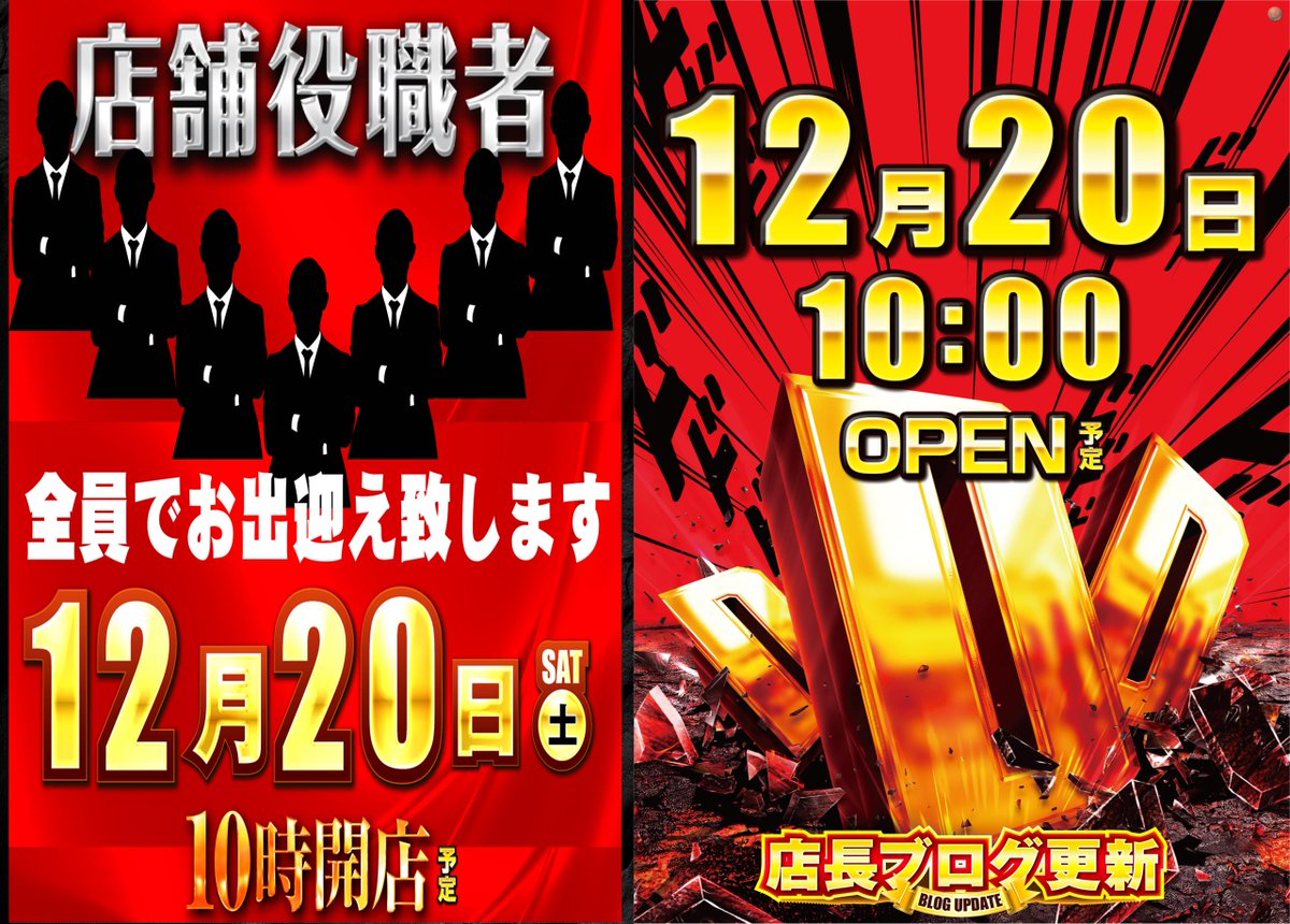 投稿本文: 12月20日(土)のダイナム三光店は・・/💥DDD💥📝店長ブログ更新📝👔店舗役職者全員集合👔\当日は朝の抽選⏰より「店長永田」をはじめ、店舗役職者👔全員でお客様をお出迎え致します👍ぜひ【朝 9:40~】の入場抽選からご来店をお待ちしています❗#ダイナム #777リーグ さらに表示