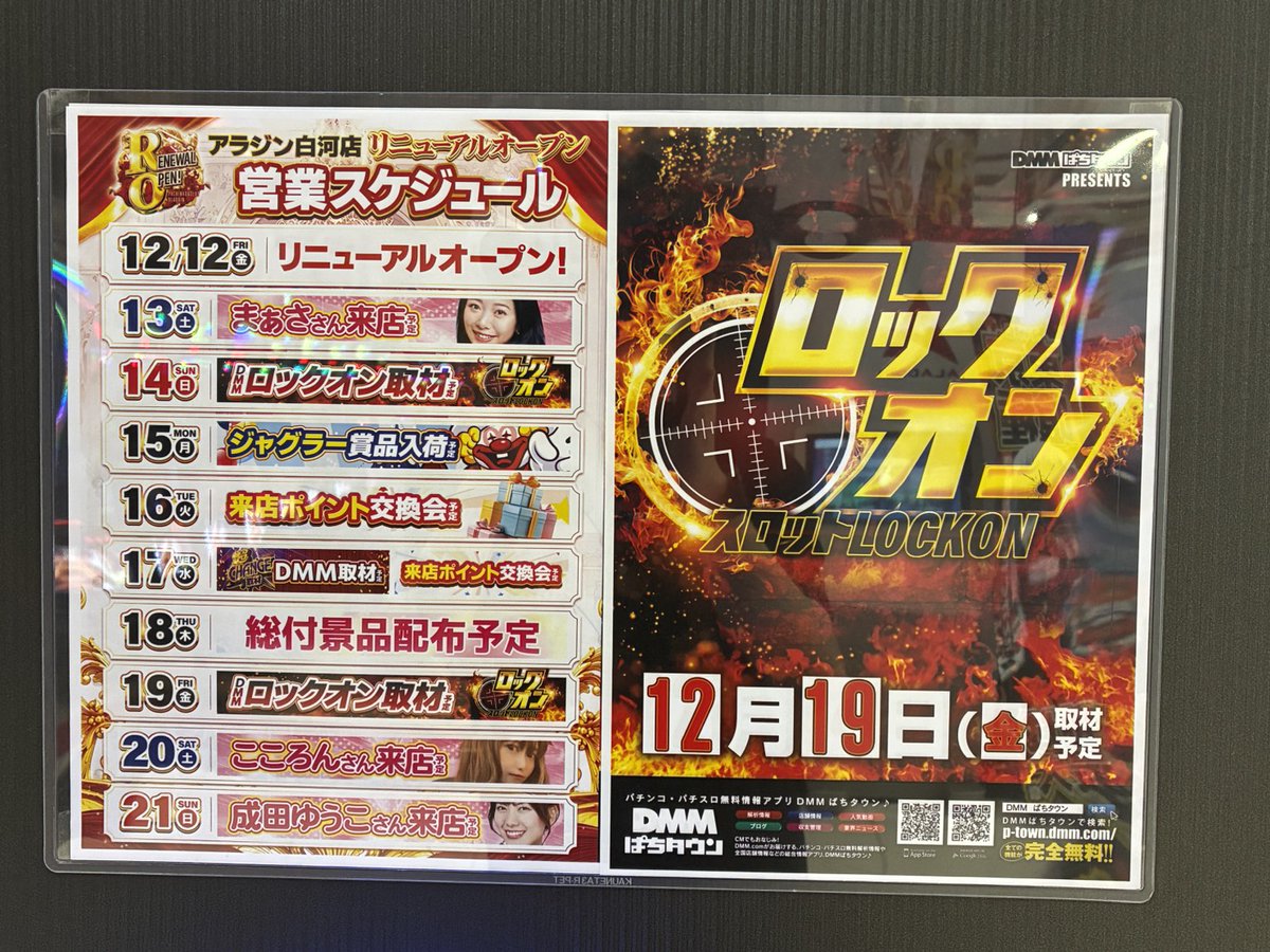 投稿本文: おはようございます!今年も残りわずかとなりましたが・・本日12月19日(金)はロックオン取材です😲まだまだアラジン白河店は盛り上がって参ります🤶ぜひ、ご来店ください#ロックオン取材#アラジン白河 さらに表示