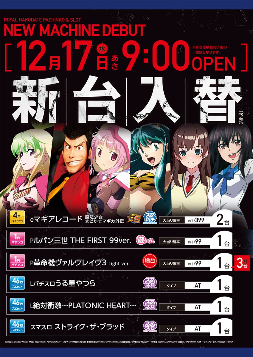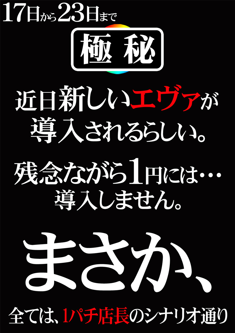 投稿本文: 1⃣7⃣日ロイヤル函館店では🔥新台入替🔥あさ9時開店まもなくシリーズ最新作エヴァ17が導入されるみたいでという事は???1パチ店長がまさか、○○!?警報発令。 さらに表示