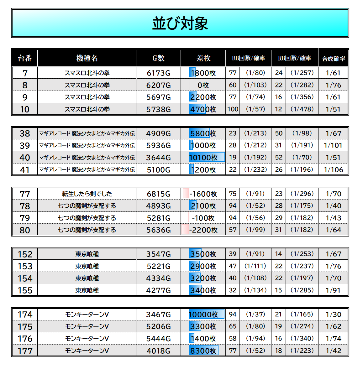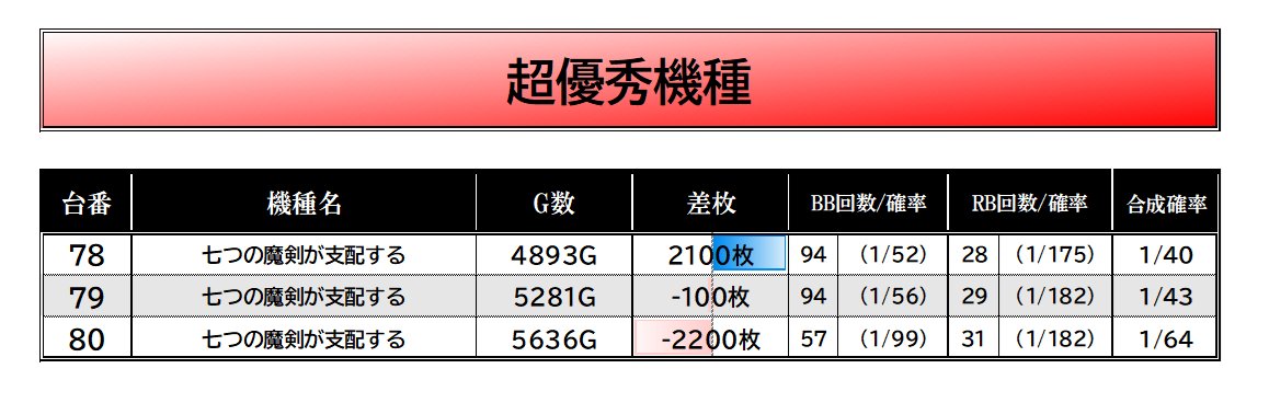 7つの魔剣➡️平均-319枚
