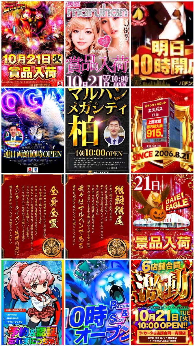 【2025/10/21 都内スロットオススメの台(店/台番号/機種)】