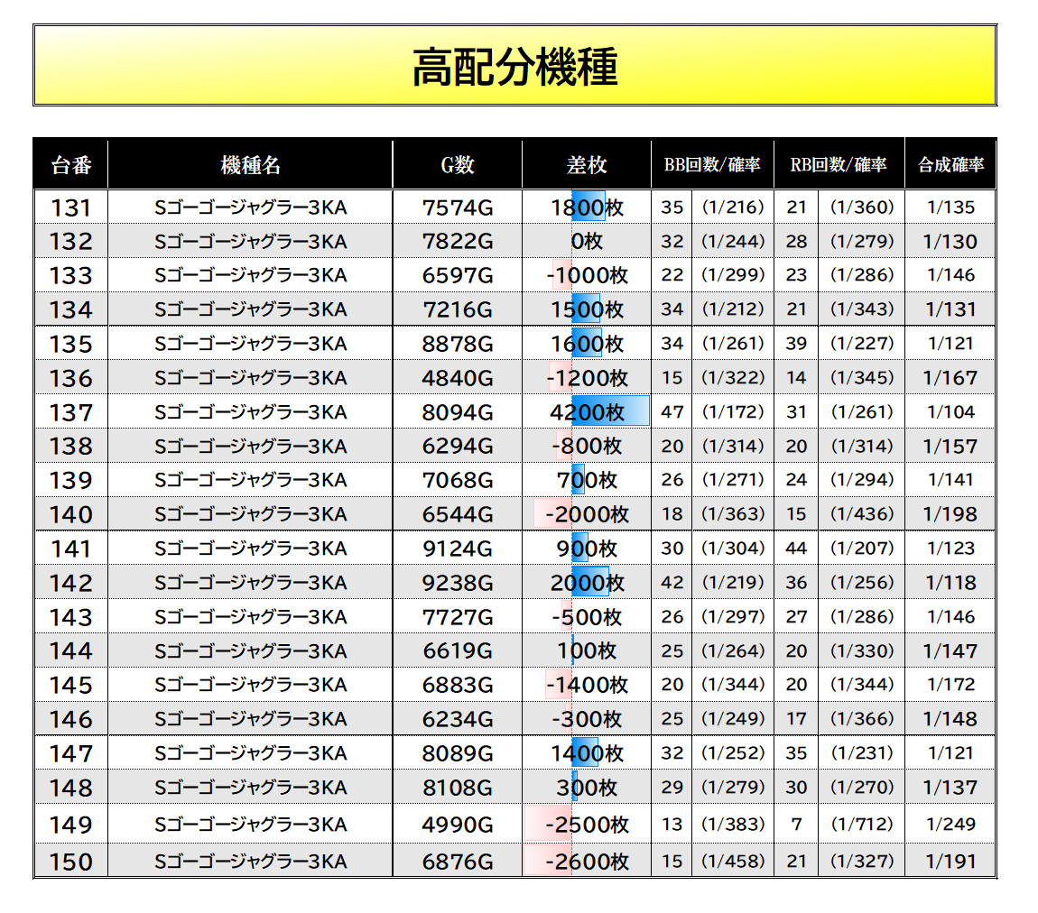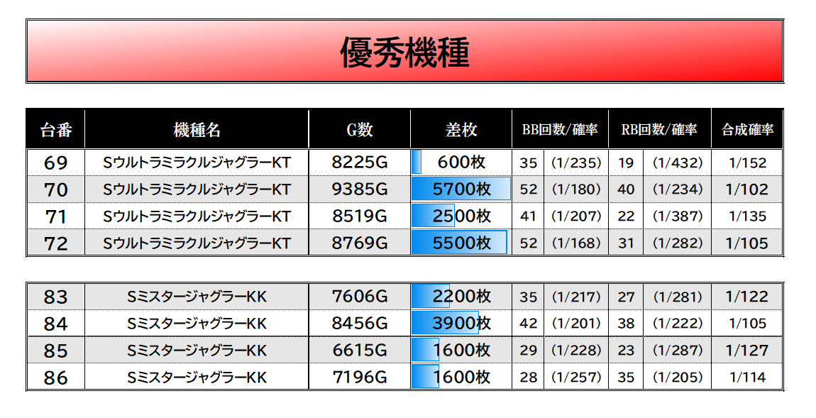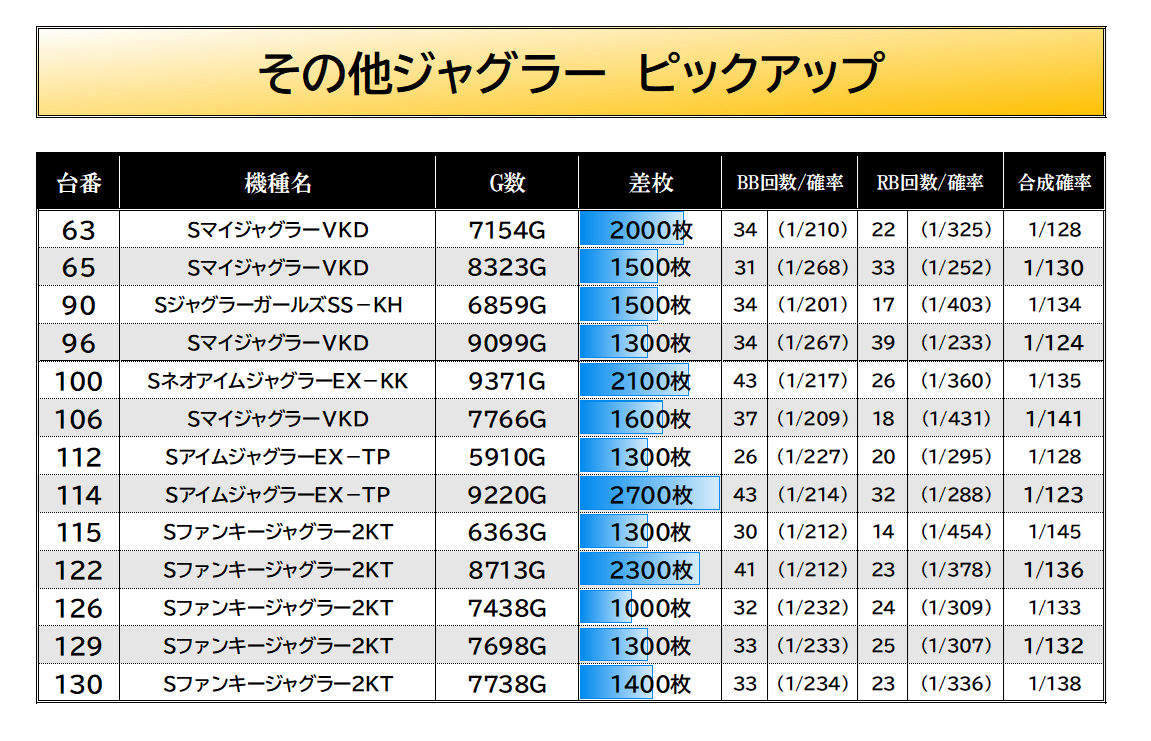 そして今回は沖ドキシリーズに好調台が多く見えておりゴージャスからは5000枚が2台に3000枚が3台!