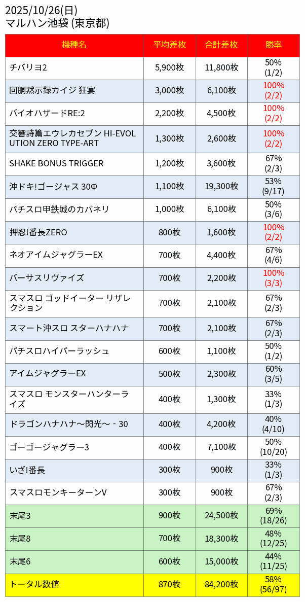 マルハン池袋/メガシティ 蒲田7/亀有/エスパス 新宿 歌舞伎 町/渋谷新館/赤坂見附/ビックディッパー新橋1号 https://twitter.com/onePunch0101/status/1982473329966747963
