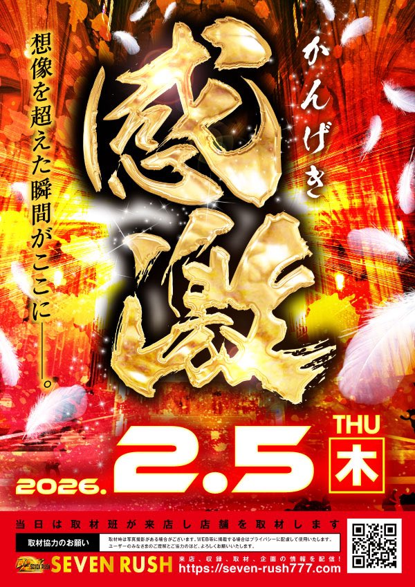 ┗1/2、1/3などなど… https://twitter.com/777sevenrush/status/2018965250528137371