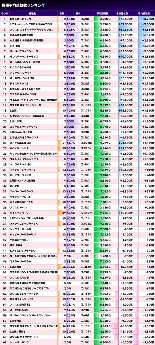 10/20👑東京のスロットランキング👑