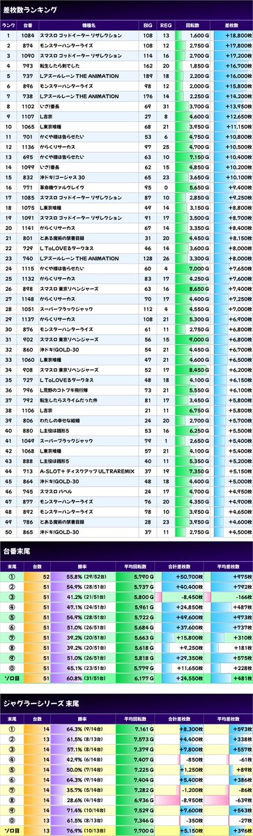10/20📈東京都 差枚結果📈