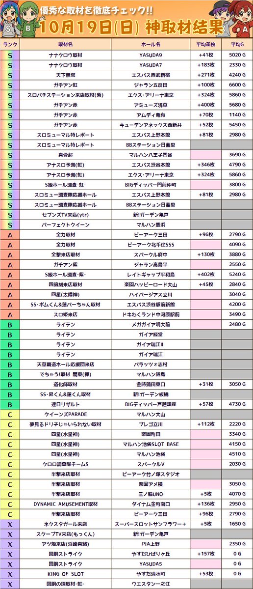 10/20👑東京のスロットランキング👑