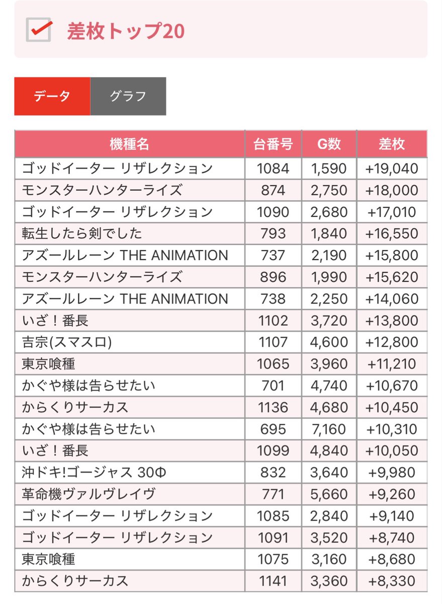 10/20📈東京都 差枚結果📈