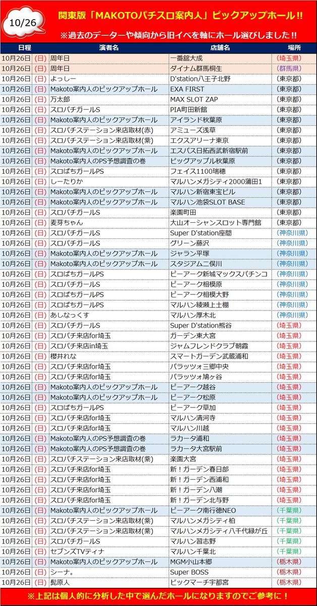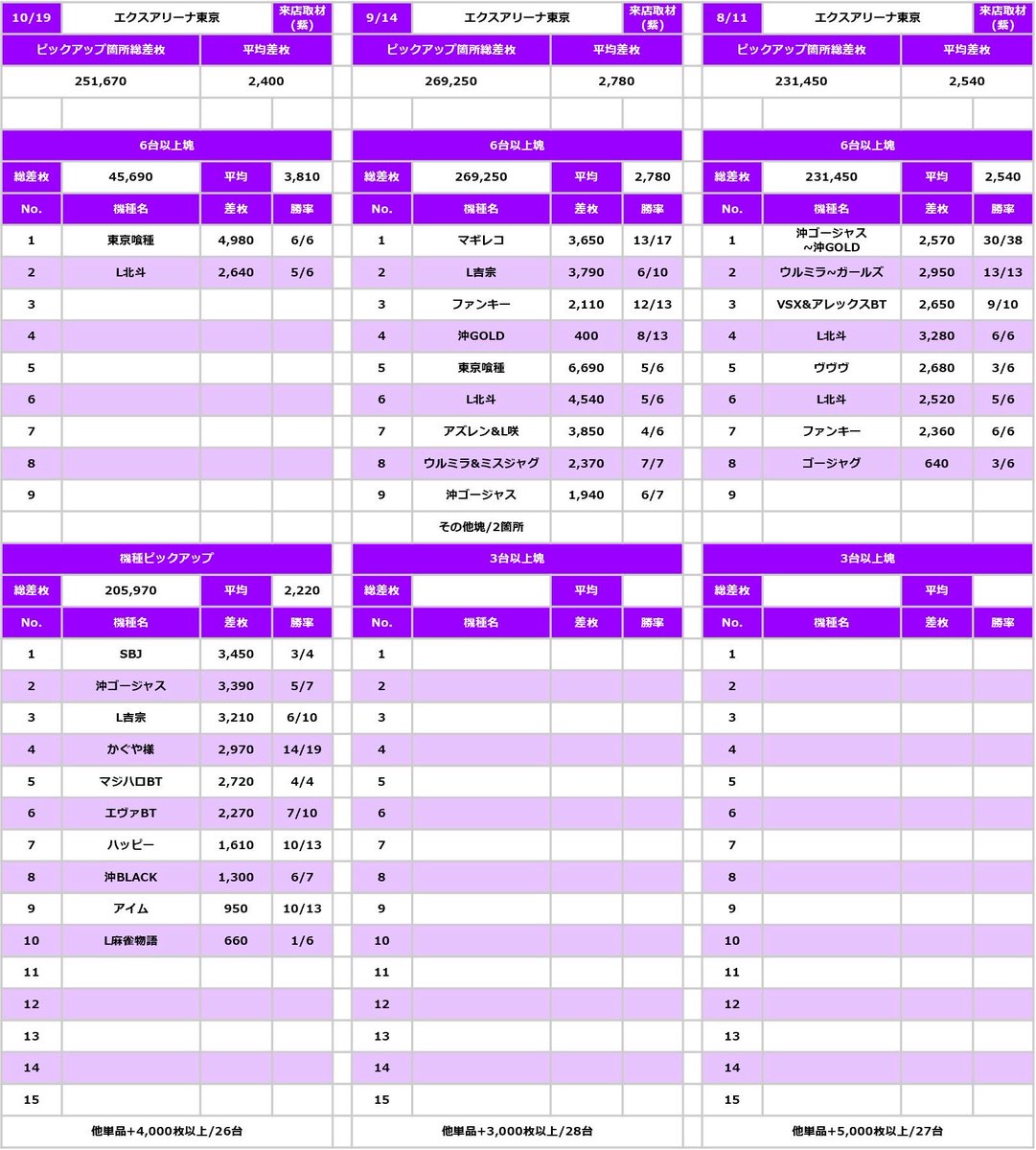 前回(10/16)は総差枚+165,373(平均+324)枚と明日もこれくらいの内容に期待できそう。