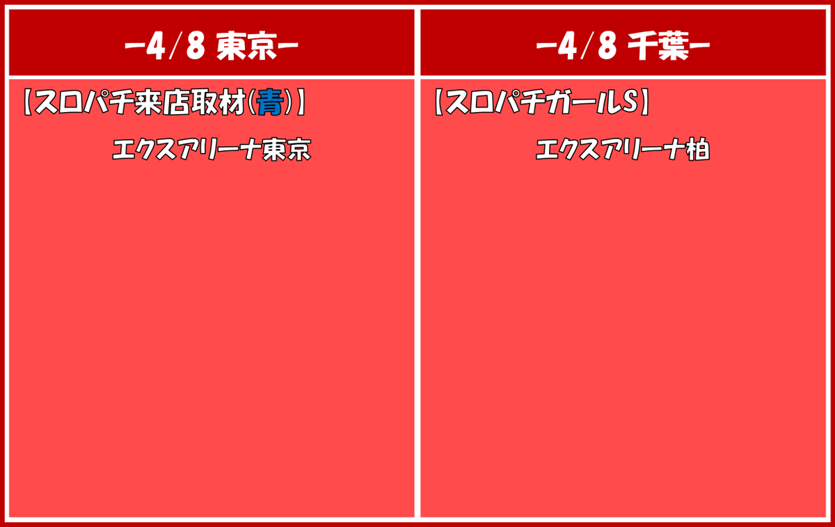 投稿本文: エクスアリーナ東京】2026/4/8(水)高設定機種予想【パチスロデータ分析】|設定大好き!シゴロちゃん 🎲
