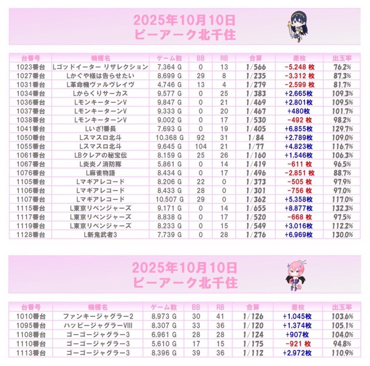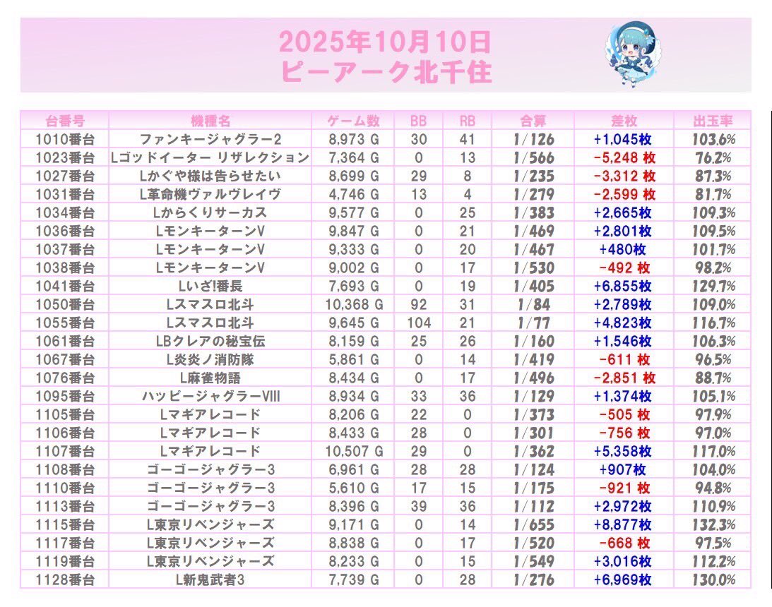 全履歴&前回結果も参考に立ち回りを👇🏻 https://twitter.com/slot_channel_/status/1982741386614145506