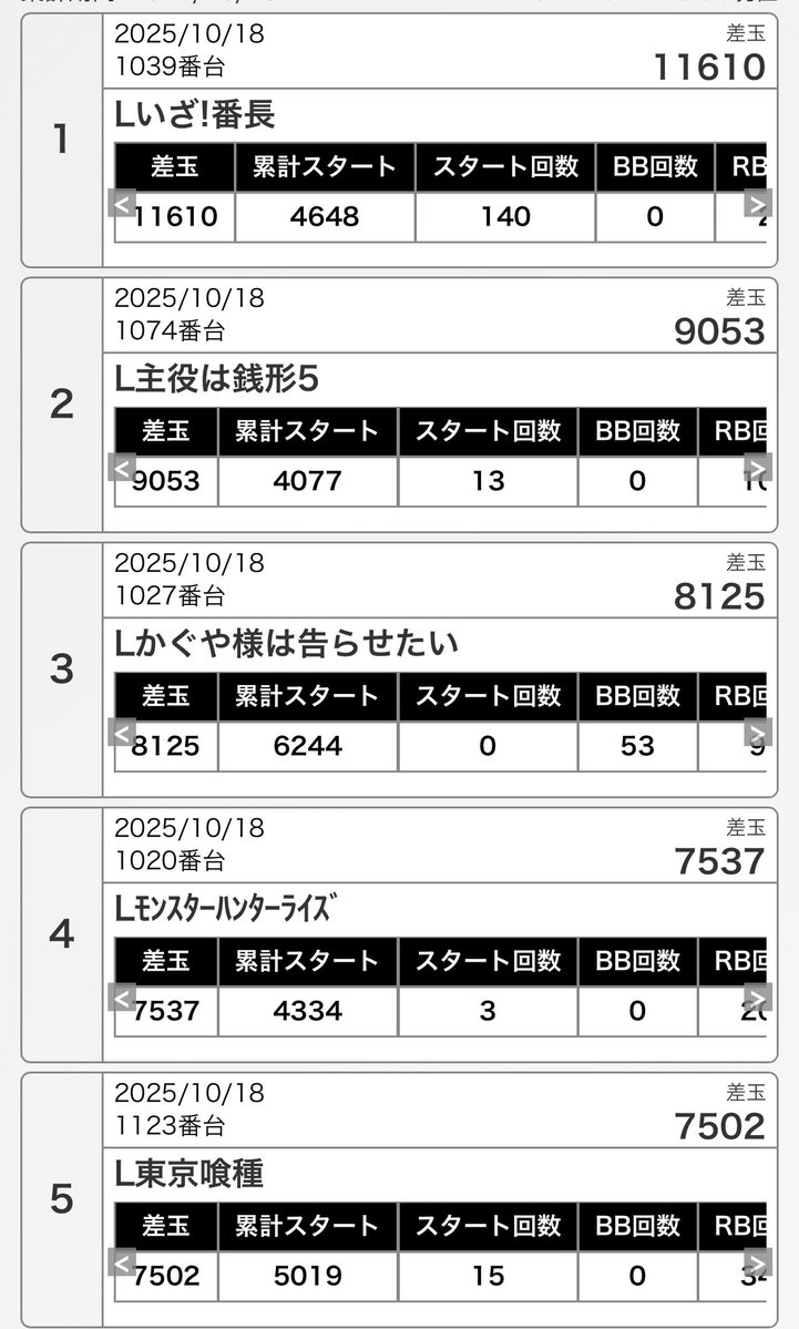 ➡︎L東京喰種[+4/6台] 平均+1,673枚 https://twitter.com/pachi_slot_rush/status/1979144111556038983