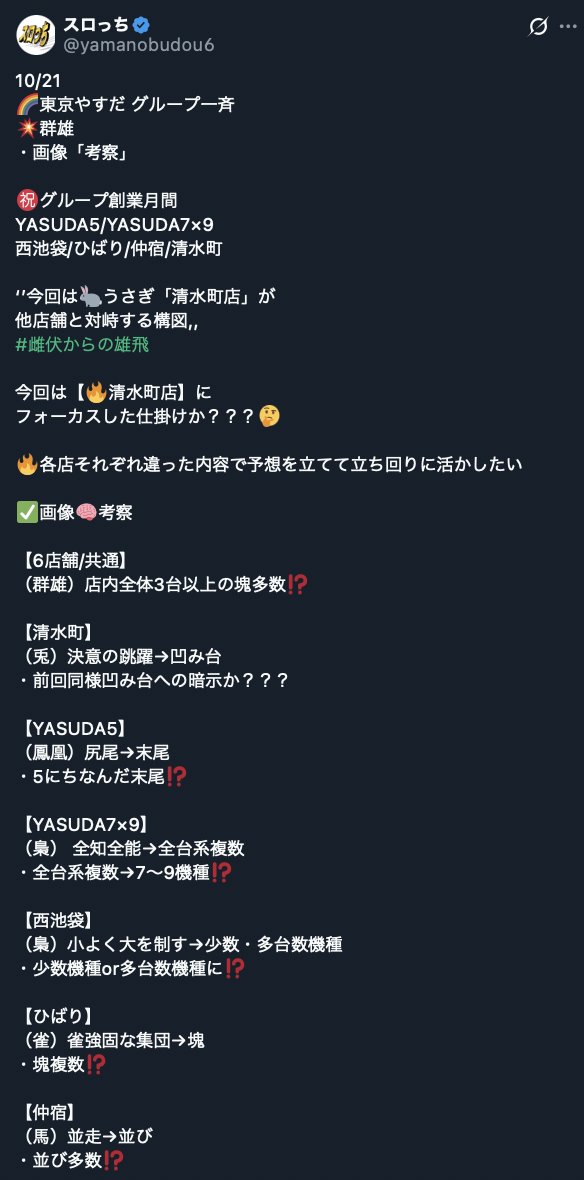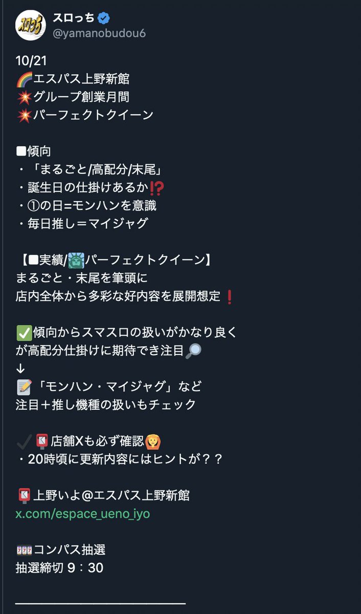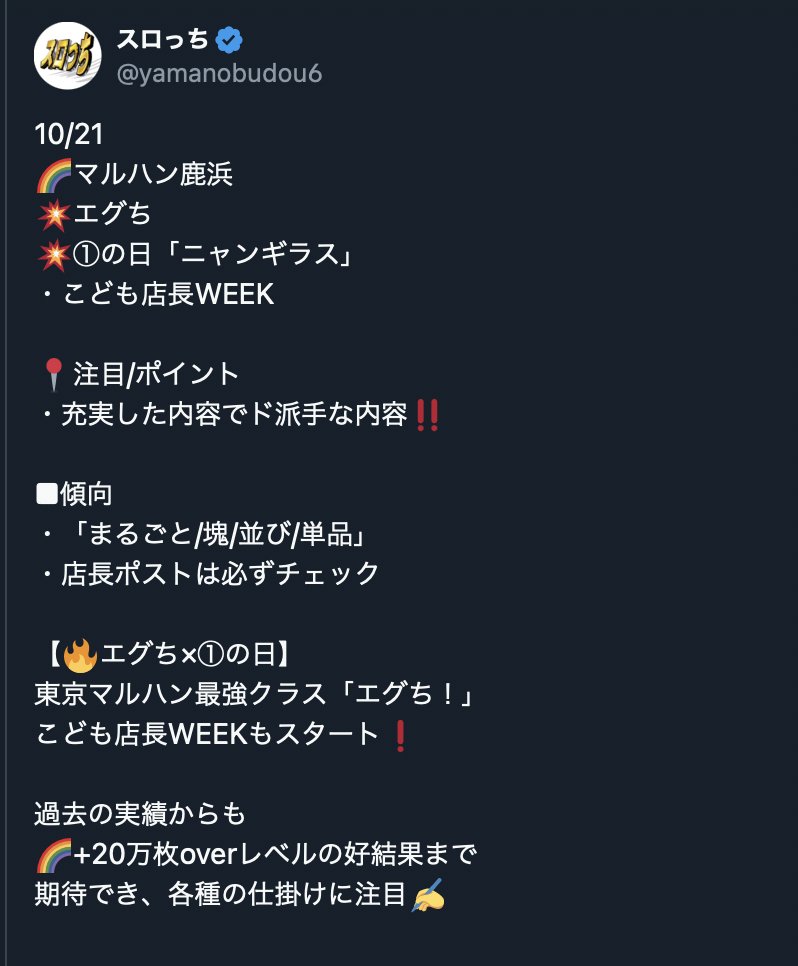 10/21都内マルハン店長ポスト考察🔎