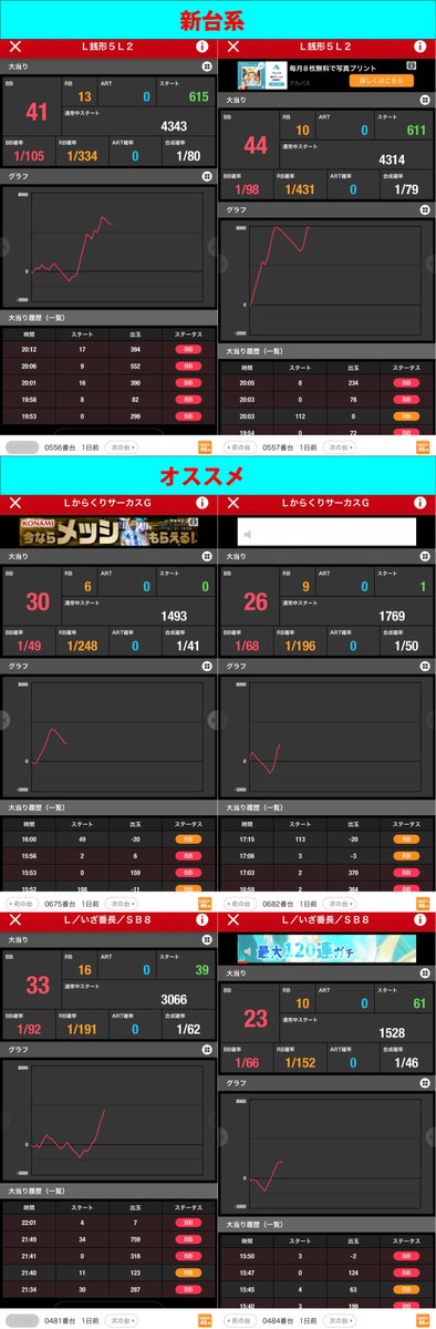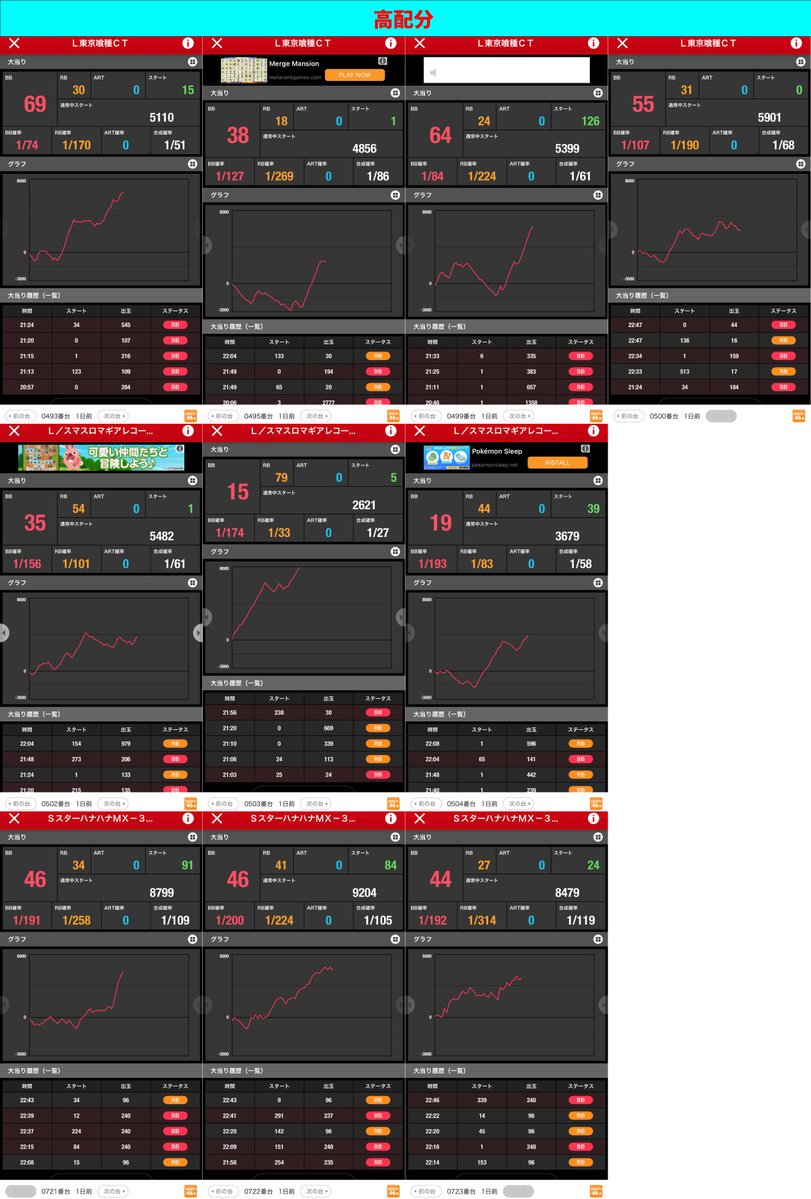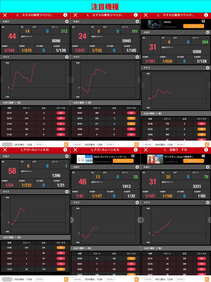 東京喰種、マギレコ、スターハナハナはかなり配分高め。合わせて新台、オススメ機種にもしっかり使われているので狙い台が絞りやすい