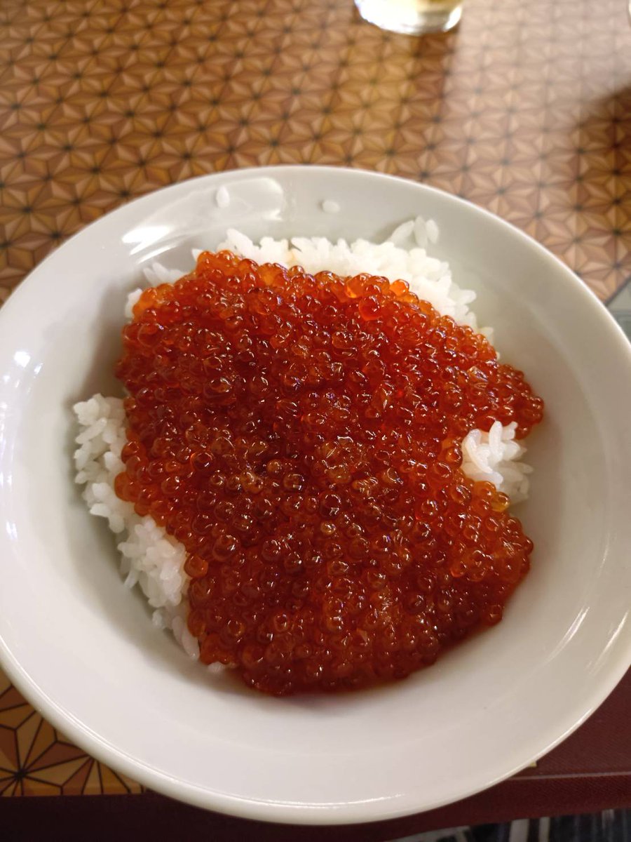 家に帰り冷蔵庫を開けたら主役がいたので即席ごちそう。白×赤のコントラストがまぶしい週のはじまりにこんな贅沢食卓だけが祝日