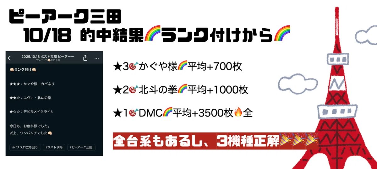 マルハン池袋/メガシティ 蒲田1/エスパス 新宿 歌舞伎 町/渋谷新館/赤坂見附/ピーアーク三田も予想🔥 https://twitter.com/onePunch0101/status/1981754454543405546