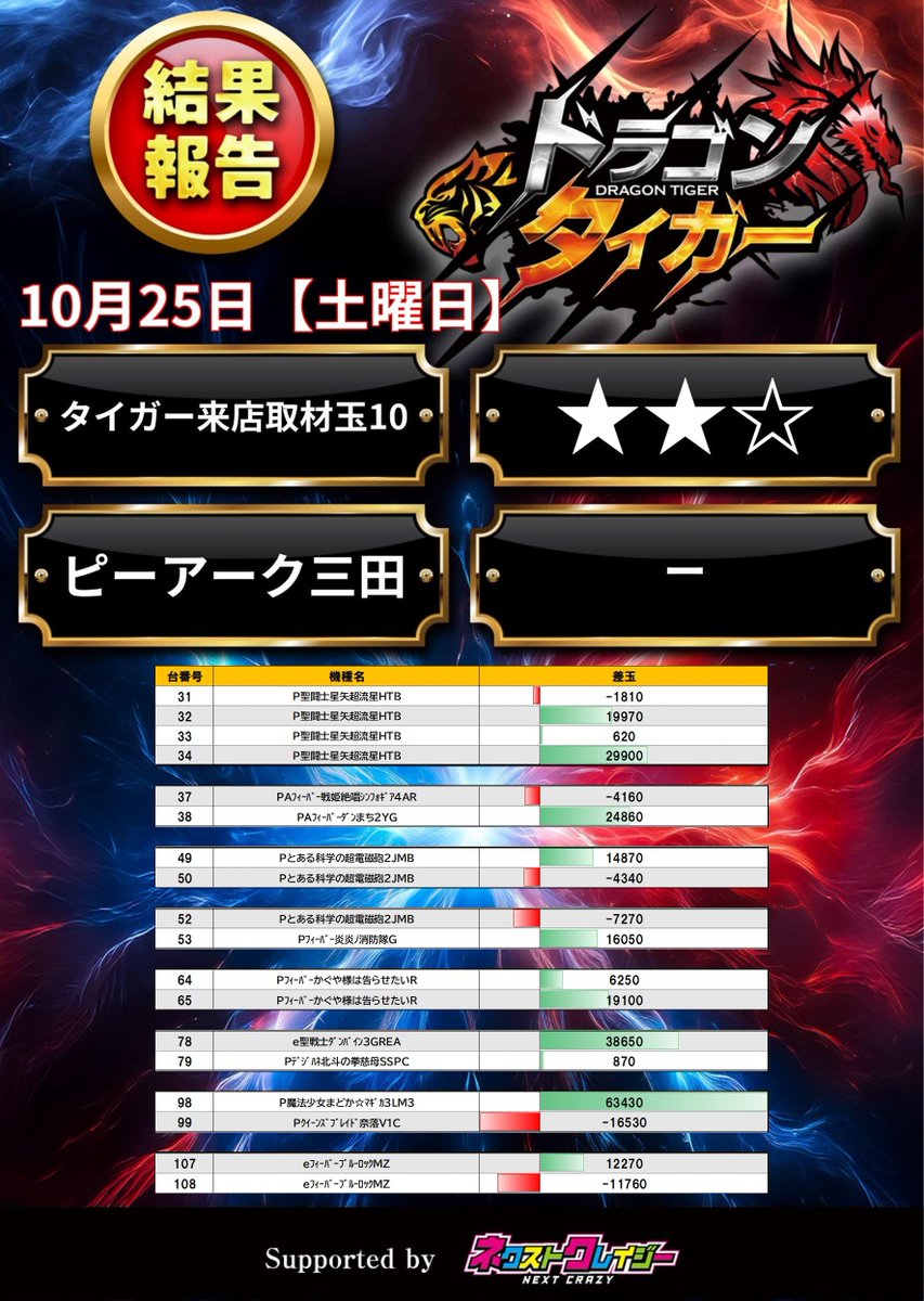 ️📝10/26(日)ピーアーク三田 結果まとめ