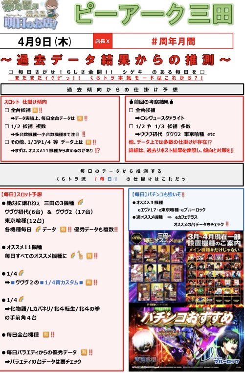 📝4/7(火) ピーアーク三田 結果まとめ