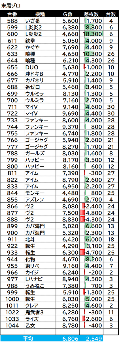 末尾ゾロ目 av.+2,550枚(全6みたいですね