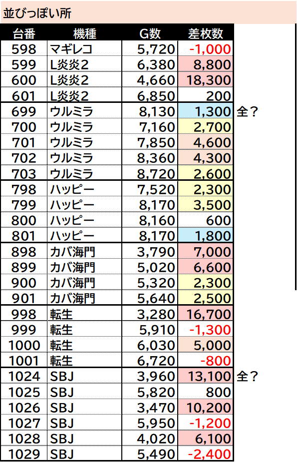 東日本マルハン合同の末尾ゾロ目に加えて「SBJ]と「ウルトラミラクルジャグラー」が全🐢
