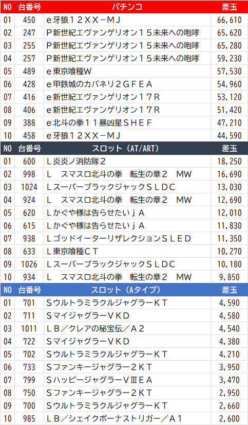 🏆昨日出玉ランキング🏆