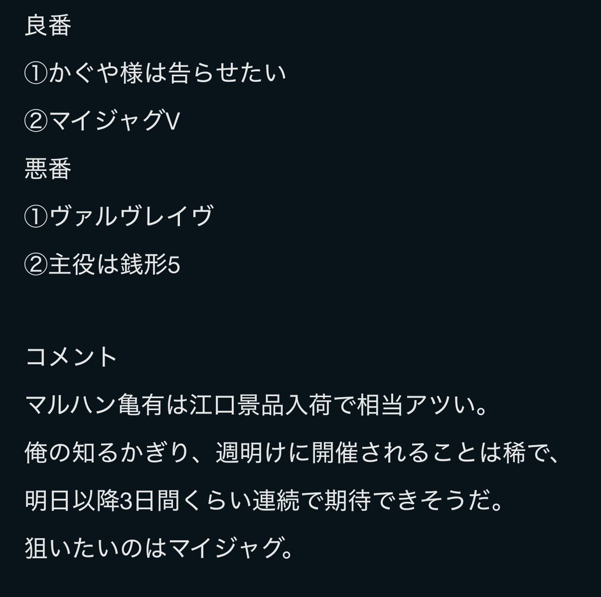 ポストのヒントをピックアップして狙い目機種を複数候補連想考察しています👀