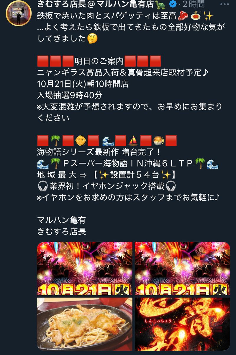 10/21都内マルハン店長ポスト考察🔎
