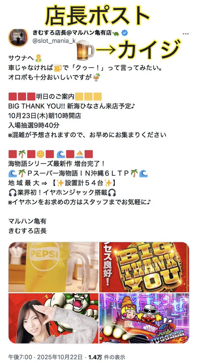 〈マルハン亀有〉 https://twitter.com/yu_kiren0430/status/1981534528704565640