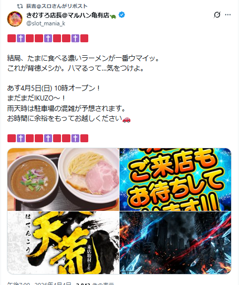 楽園立川 https://twitter.com/slo1_tyousataiZ/status/2040045640139640892