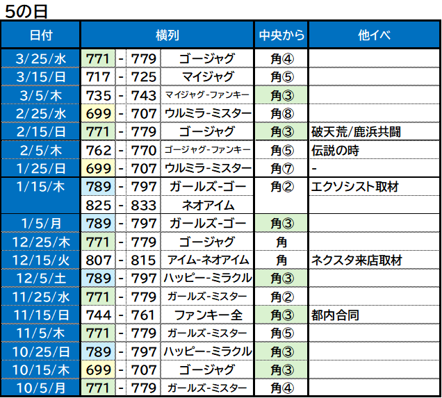 ⑤の日は恒例の【ジャグのクロス列】に注目する日🤡