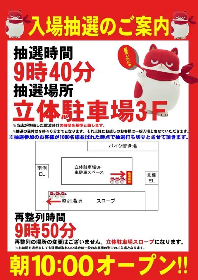 日曜日なので縦は角とかやらずに奥側が定石のハズですがそういった傾向もないのでノリで決めてそうw