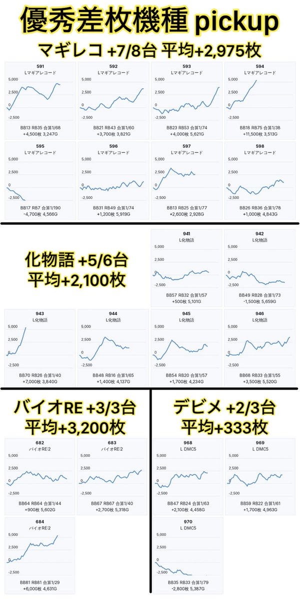 ・化物語 +5/6台 平均+2,100枚 https://twitter.com/slot_ogikiti/status/2034857561032466687