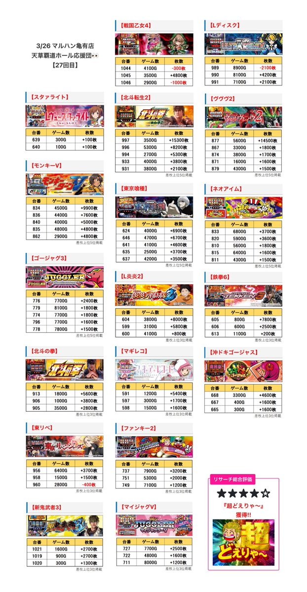 明日は新台入替もあることから特に力を入れてくると思われ、店長ポストなどをヒントに立ち回れる1日となりそうです
