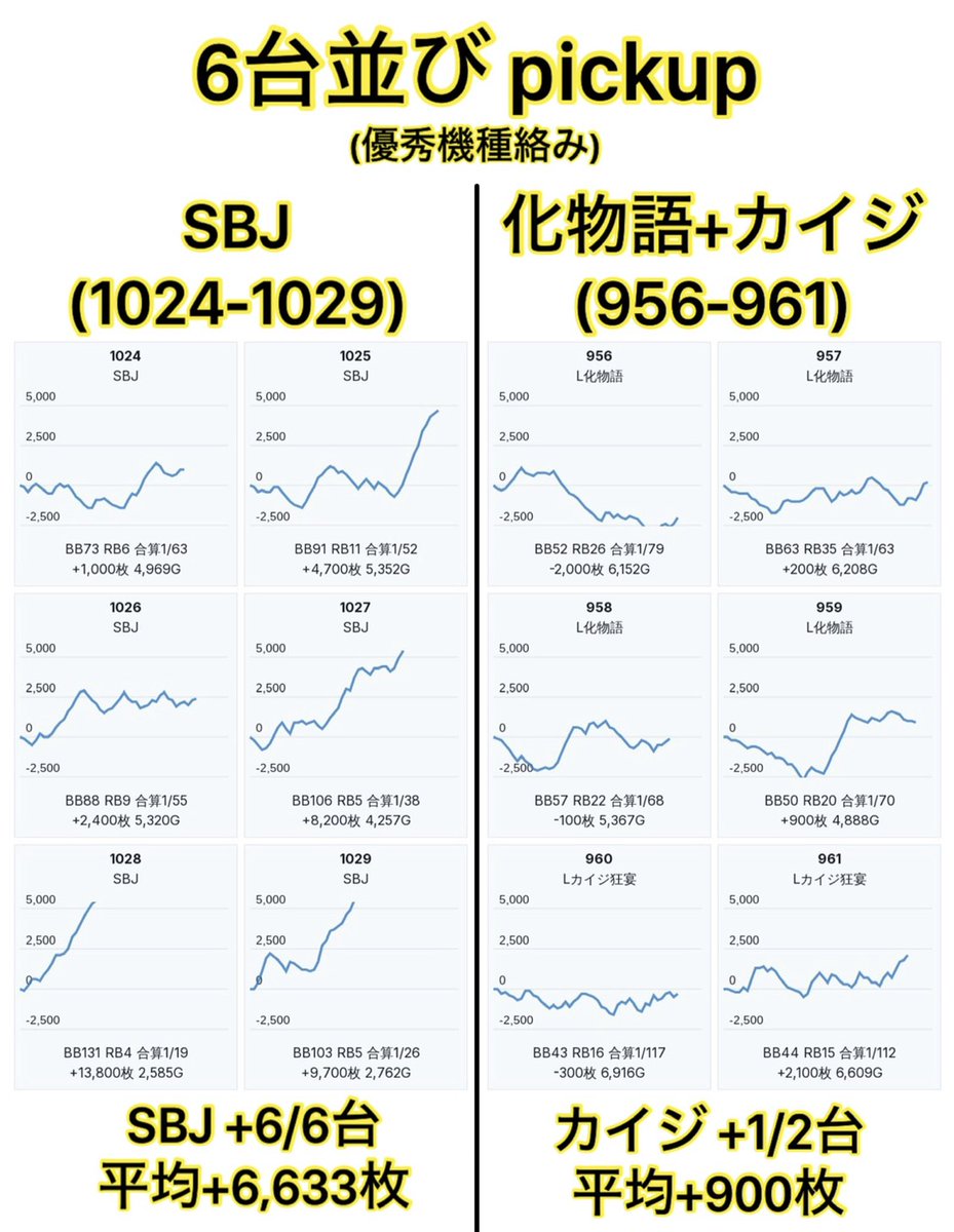 ・SBJ +6/6台 平均+6,633枚