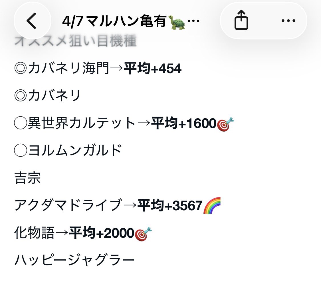 🚩⓪の日: 推し機種(4/9時点)