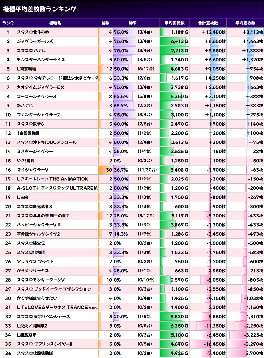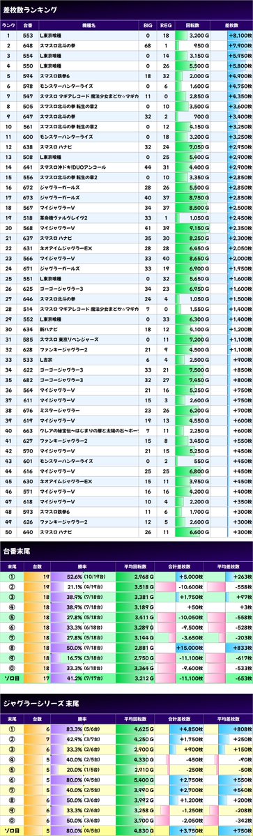 ✨ジャグラー系差枚数ベスト5✨