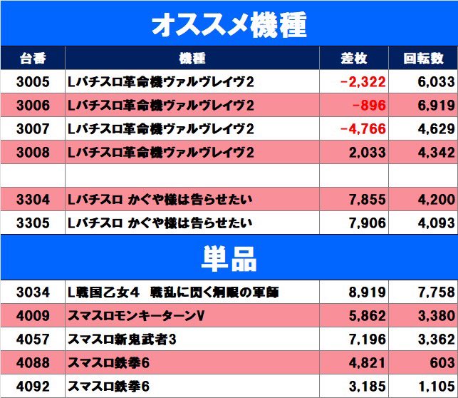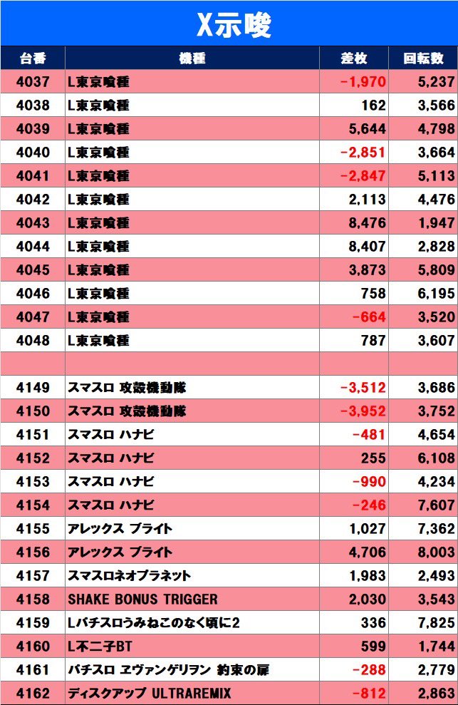 🚩毎日機種