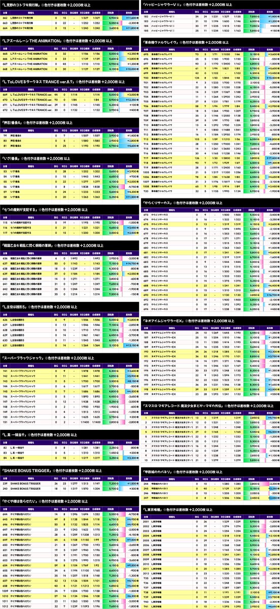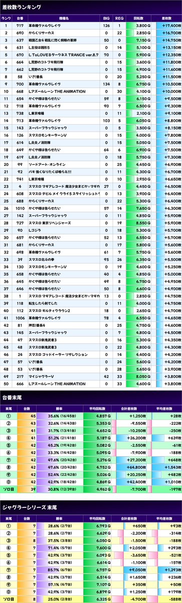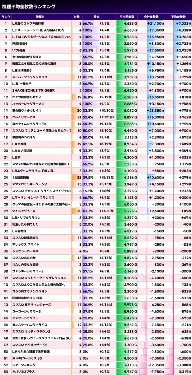 ✨平均差枚数上位機種✨