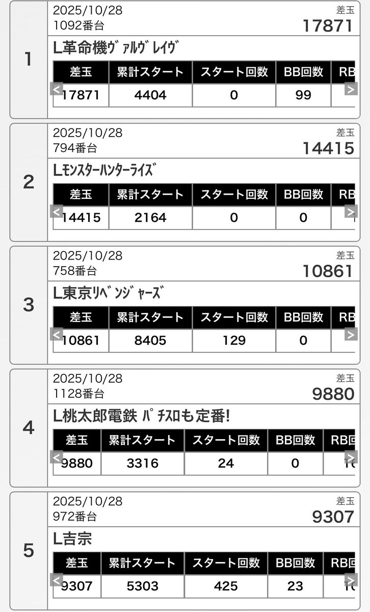 ➡︎Sカバネリ[+7/7台] 平均+2,828枚💮