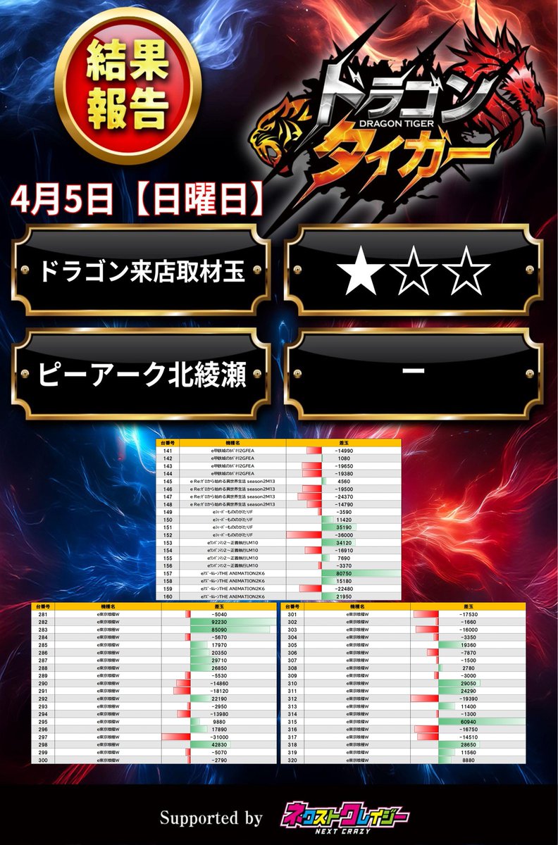 投稿本文: 4/7 ドラゴン来店取材玉(★☆☆)