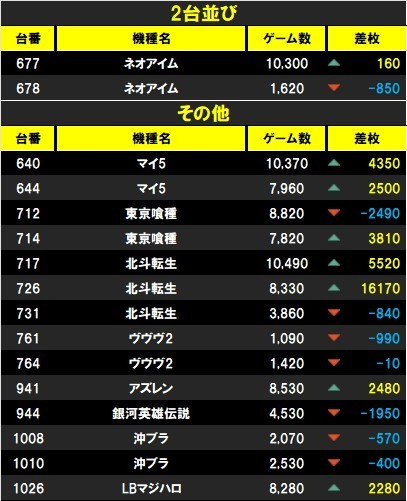 ・6台並び→マイ5/ゴージャグ~ネオアイム