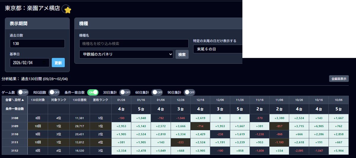 2/6📈東京都 差枚結果📈