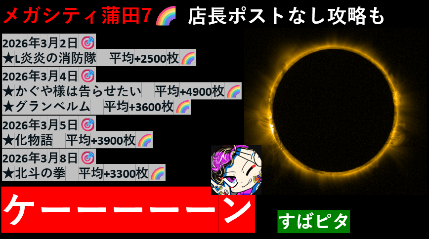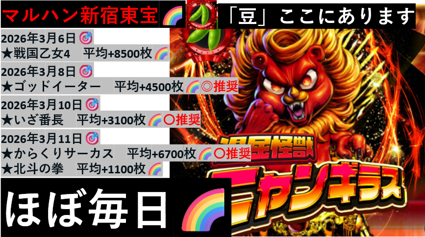 マルハン東宝/メガシティ蒲田 7/蒲田1/亀有/池袋SB