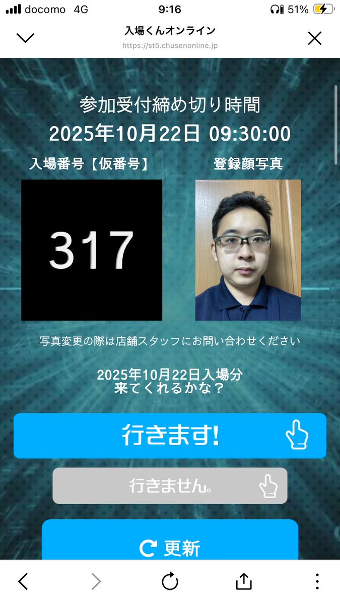 無事入店はお断りの番号でしたので違うお店で万回転してきました