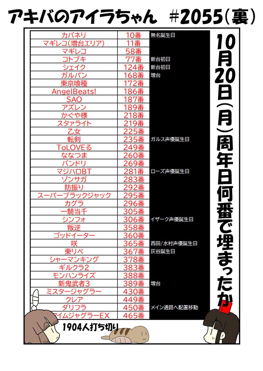 「アイランド秋葉原(1枚目)」「エスパス秋葉原(2枚目)」10/20までの詳細集計です。