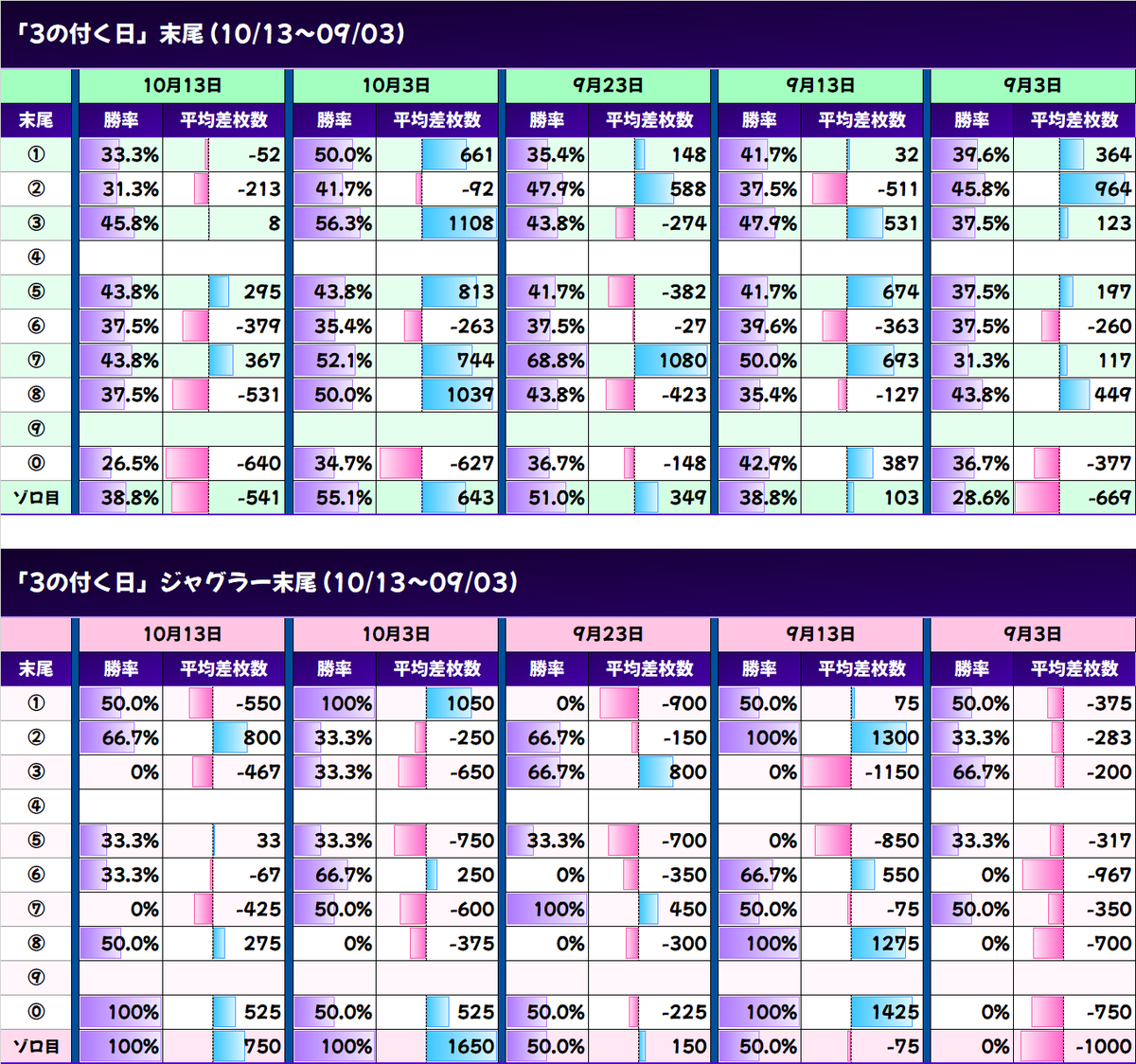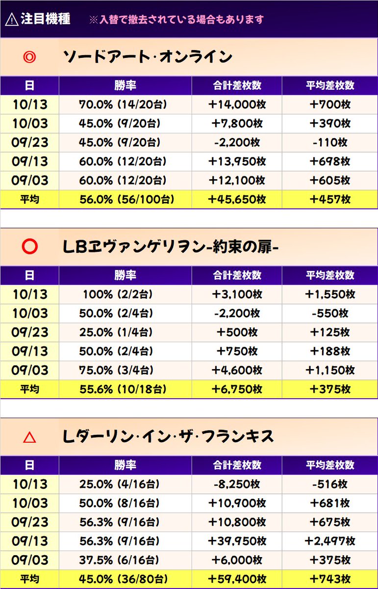 10/13 合計 -55,500枚 平均 -144枚(144/385台)
